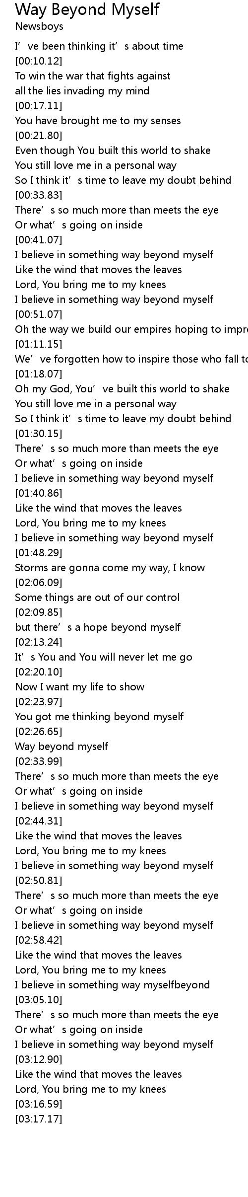| [00:30.04] | So I think it’s time to leave my doubt behind |