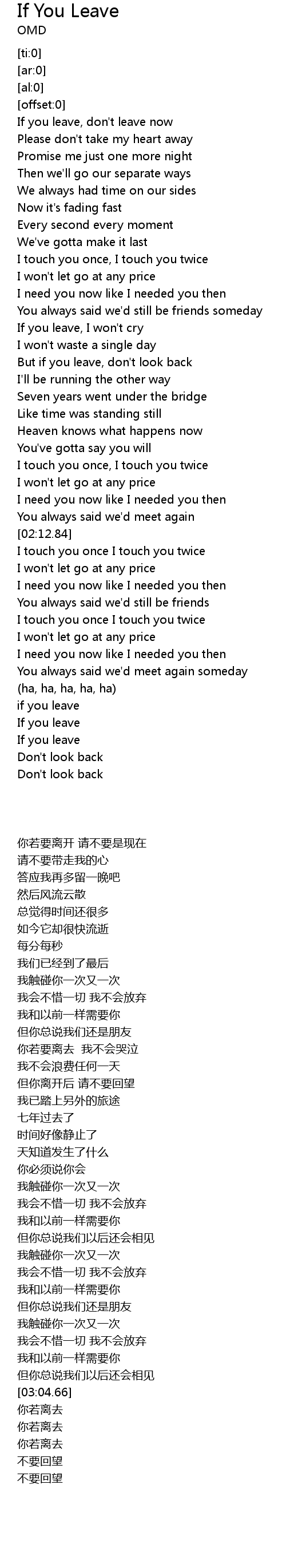 If you leave, don't leave now |