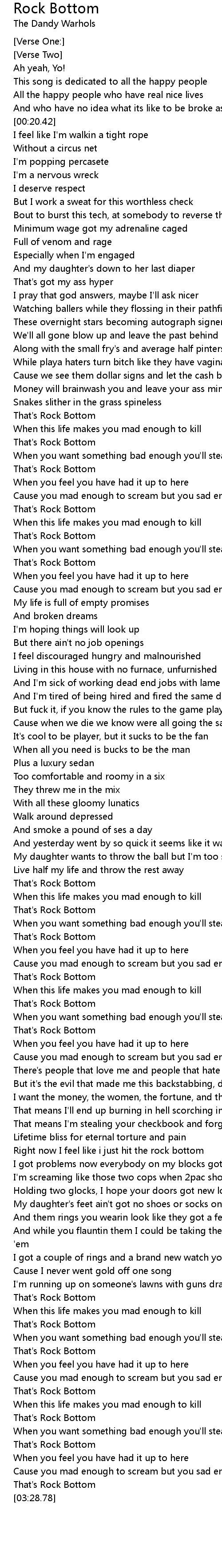 Right now I feel like i just hit the rock bottom |