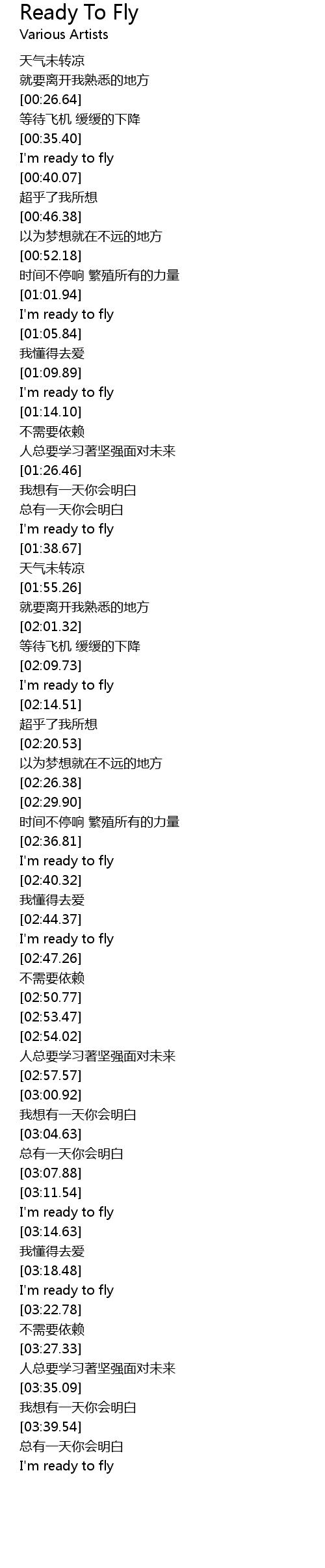 | [01:35.67] | I' m ready to fly |
