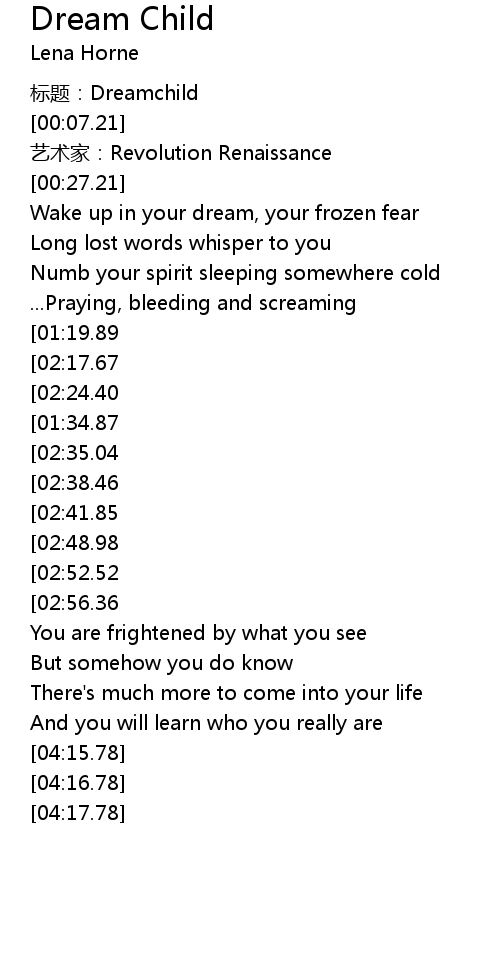 | [01:20.57][01:34.87][02:31.81][02:45.87][03:32.82][03:46.33][04:02.81] | Dreamchild |