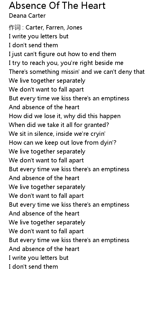 | 歌曲 | Absence Of The Heart |