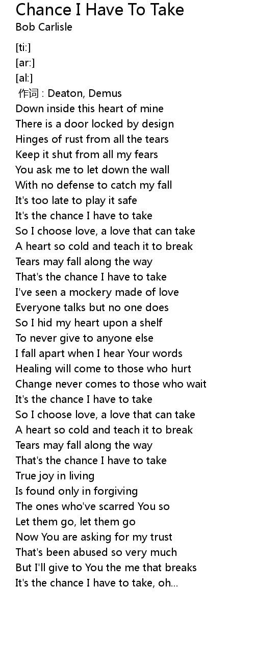 | 歌曲 | Chance I Have To Take |