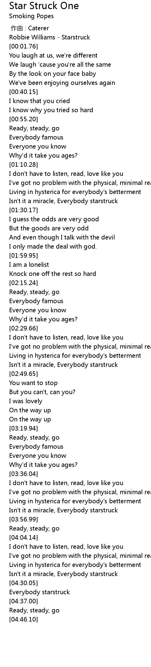| [02:44.09] | Isn' t it a miracle, Everybody starstruck |
