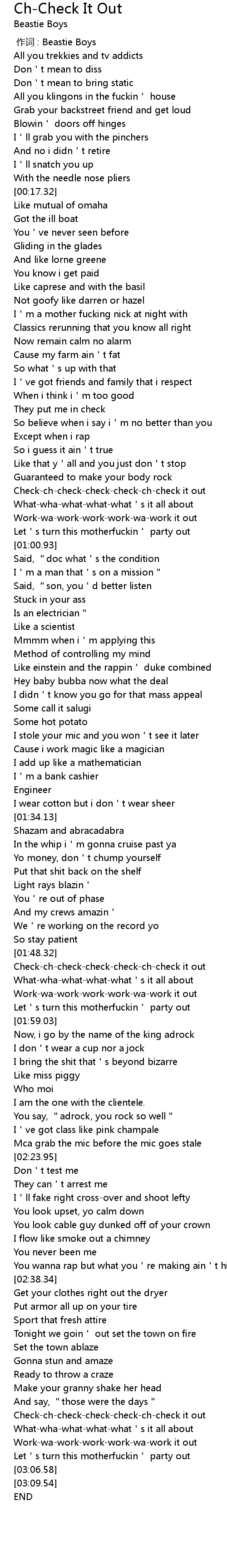 | [00:00.00] | 作词 : Beastie Boys |