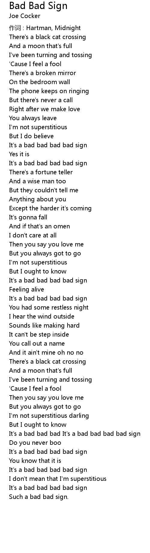 | It' s a bad bad bad It' s a bad bad bad bad sign | |