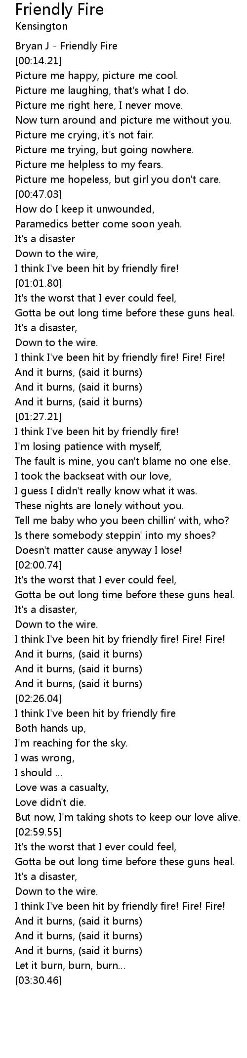 | [01:13.60] | I think I' ve been hit by friendly fire! Fire! Fire! |