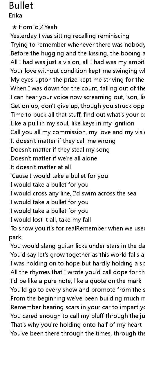 | To show you it's for realRemember when we used to flow together back in the park | |