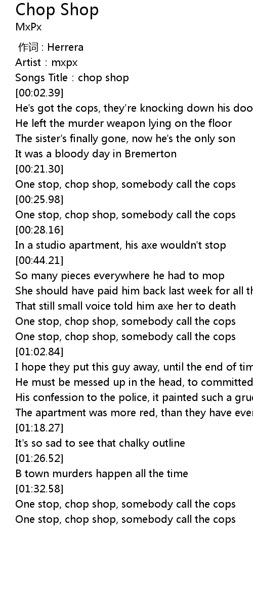 | [00:26.55] | One stop, chop shop, somebody call the cops |