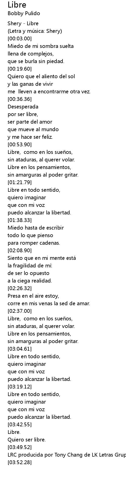 | [03:50.43] | LRC producida por Tony Chang de LK Letras Grupo |