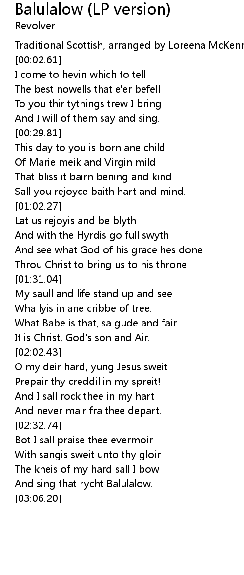 [02:56.80] And sing that rycht Balulalow.