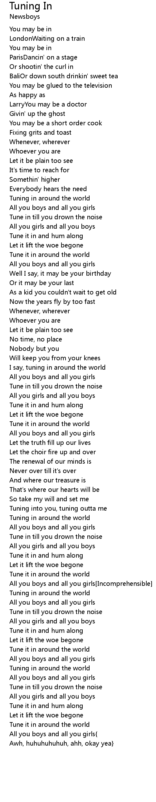 All you boys and all you girls[Incomprehensible] |