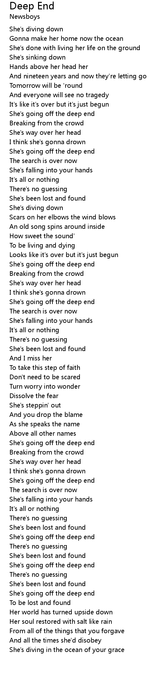 She's diving in the ocean of your grace |