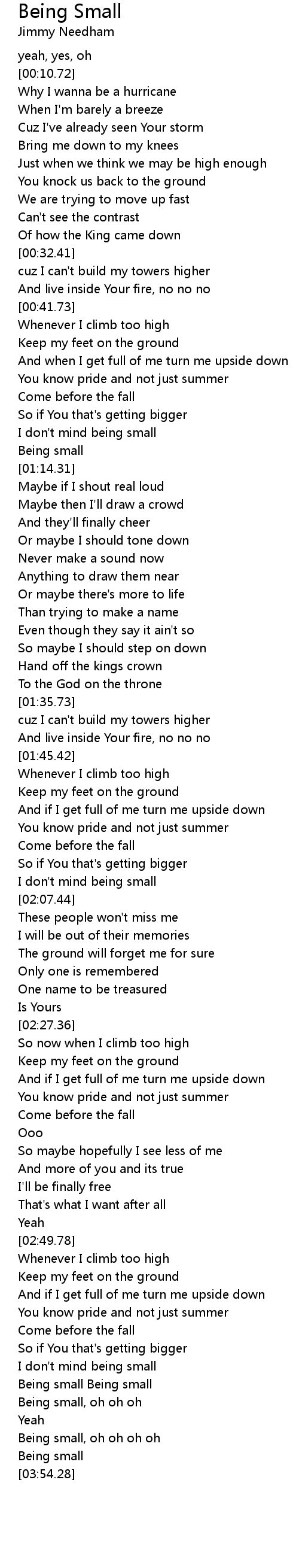 Being small, oh oh oh oh |