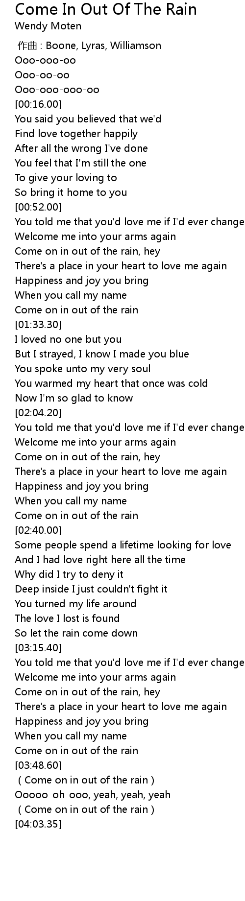 | [03:49.42] | (Come on in out of the rain) |