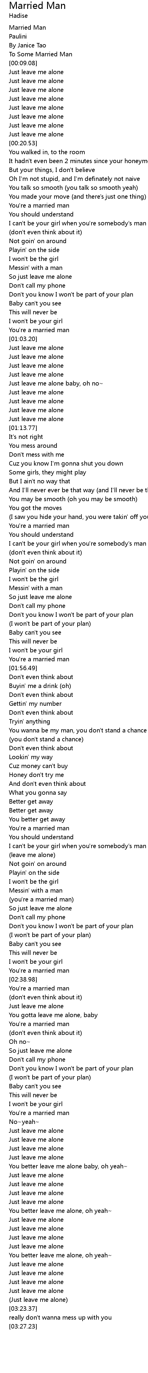 | [02:22.98] | (leave me alone) |