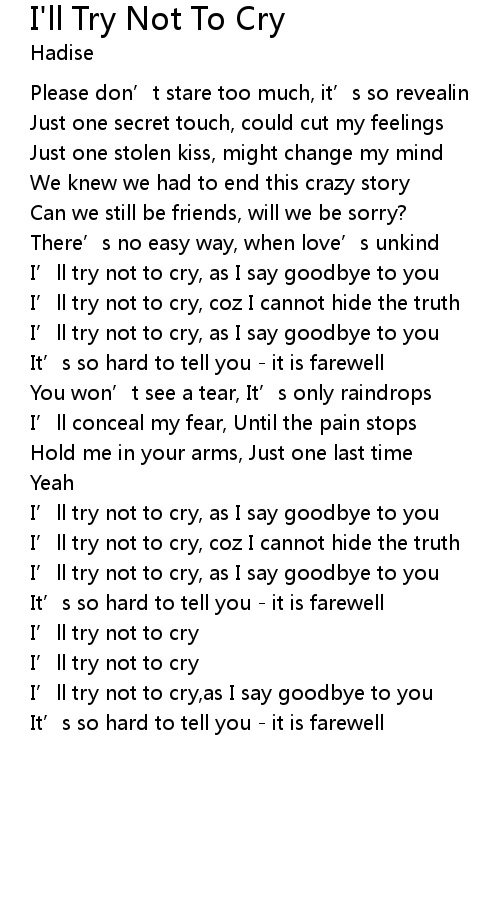 | I' ll try not to cry | |