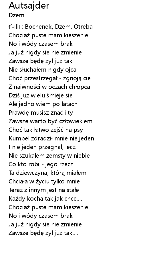 | 歌曲 | Autsajder |