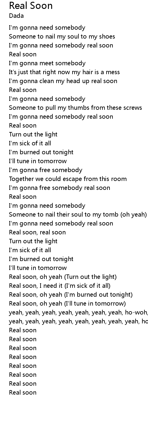 Real soon, I need it (I'm sick of it all) |