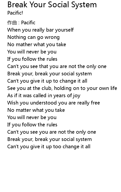 | 歌曲 | Break Your Social System |