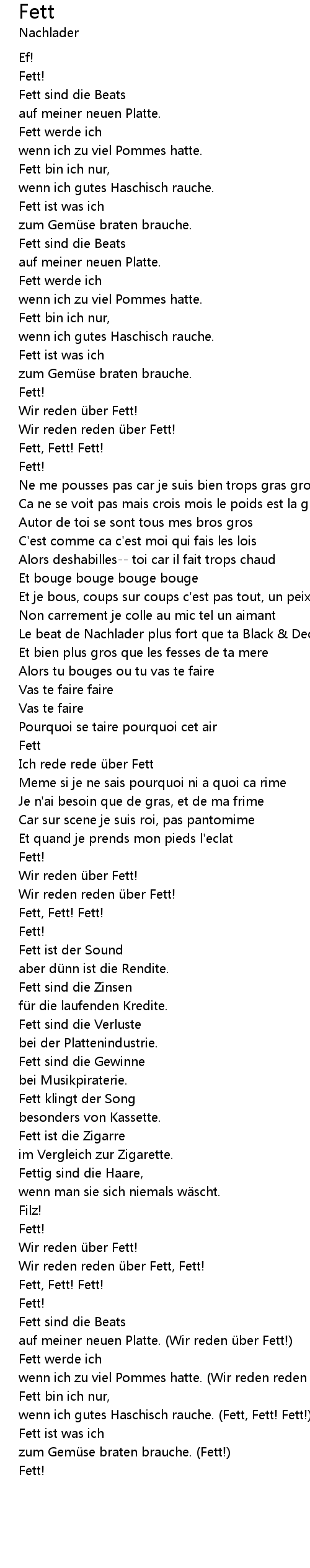 auf meiner neuen Platte. (Wir reden über Fett!)