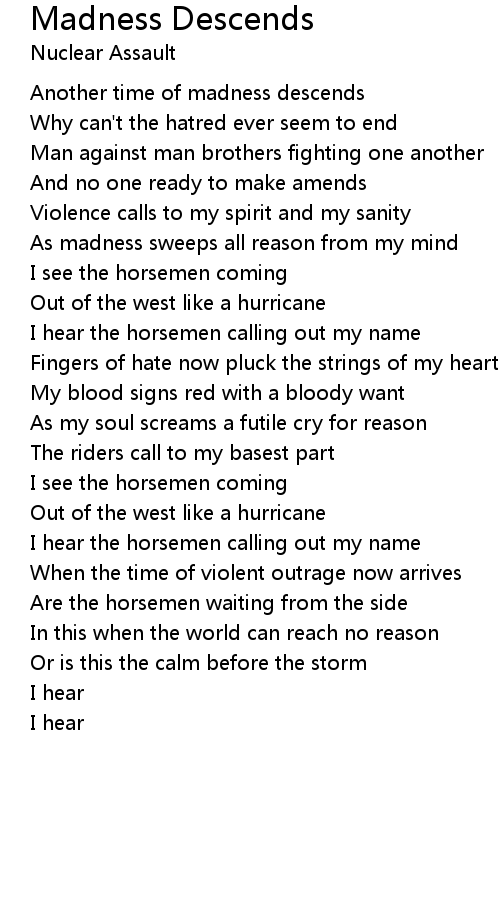 As madness sweeps all reason from my mind |