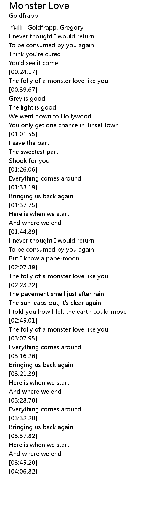 | [00:00.00] | 作曲 : Goldfrapp, Gregory |