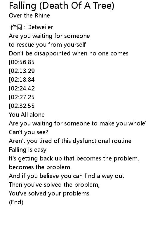 | [03:21.36][02:18.84][01:10.59] | It's getting back up that becomes the problem, |
