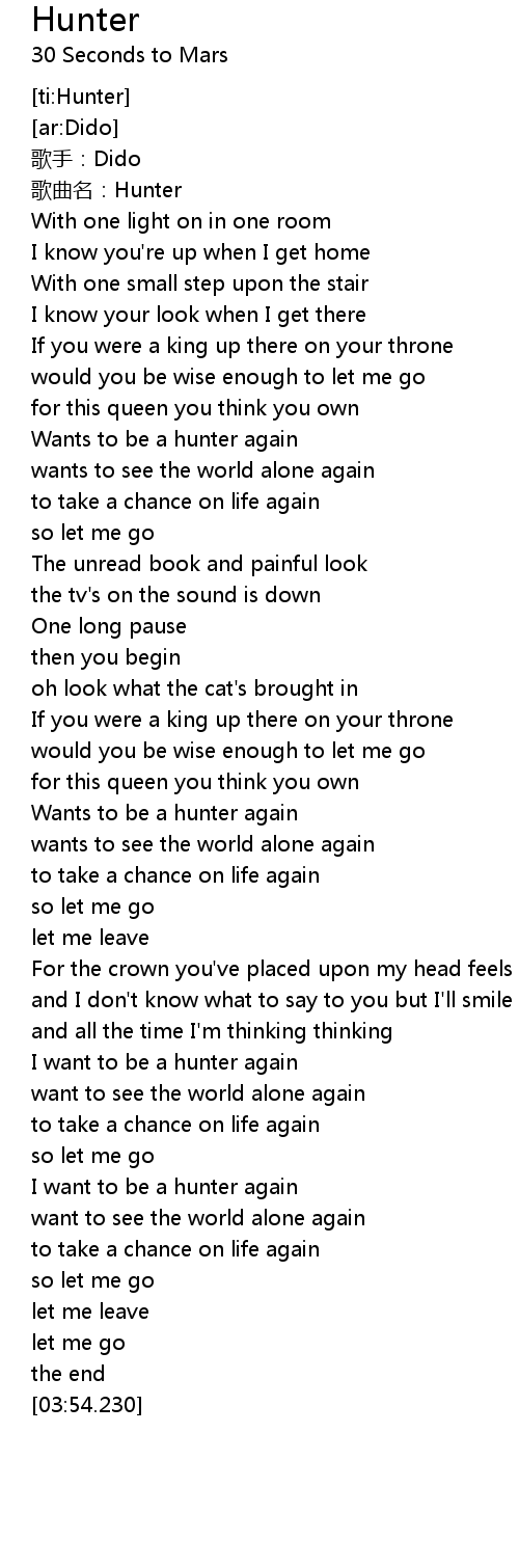 | [02:05.880] | For the crown you've placed upon my head feels too heavy now |