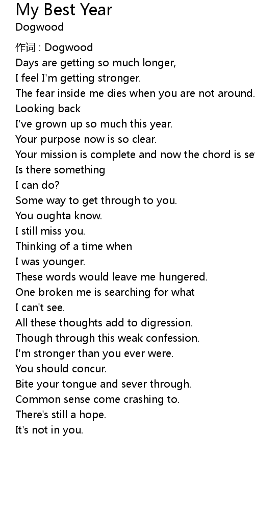 | 歌曲 | My Best Year |