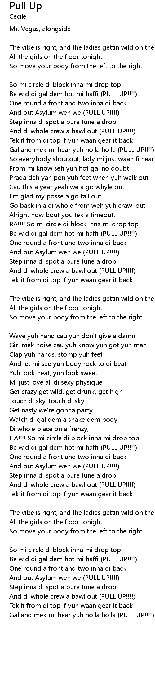 | Gal and mek mi hear yuh holla holla (PULL UP!!!!) |
