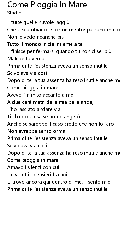 | E finisce per fermarsi quando tu non ci sei piu | |