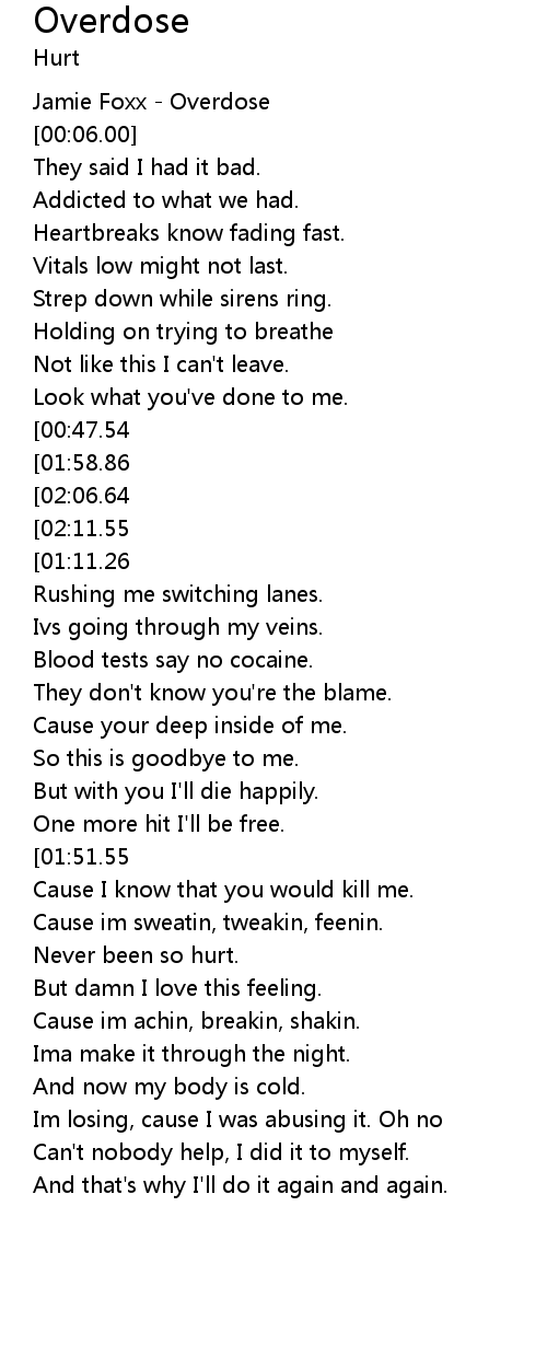 | [03:02.73][01:58.86][00:55.15] | They said I've overdose overdose overdose on you. |