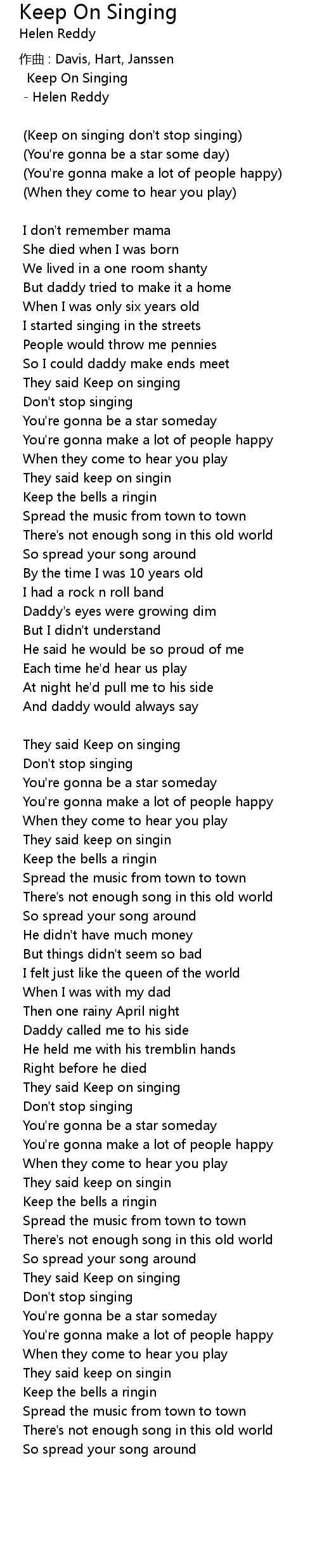 | Keep on singing don' t stop singing | |