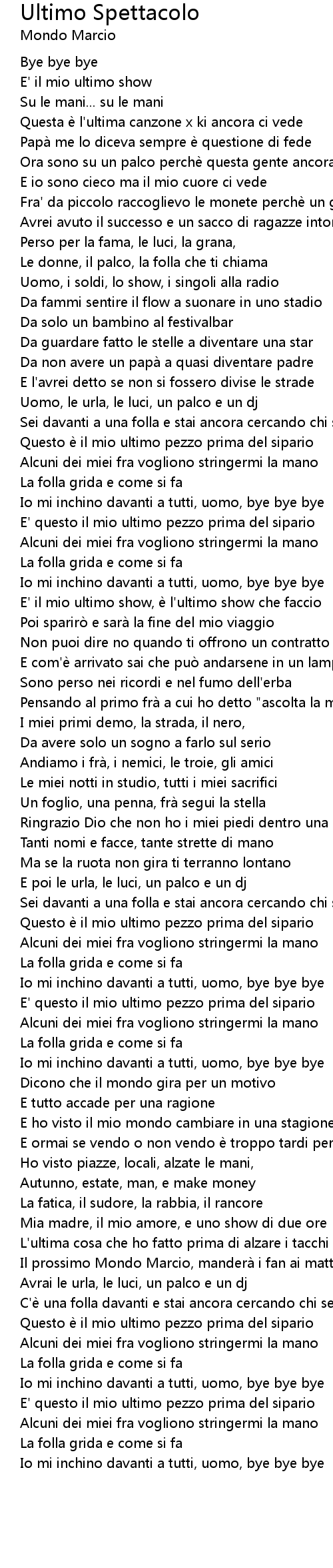 | E' questo il mio ultimo pezzo prima del sipario | |