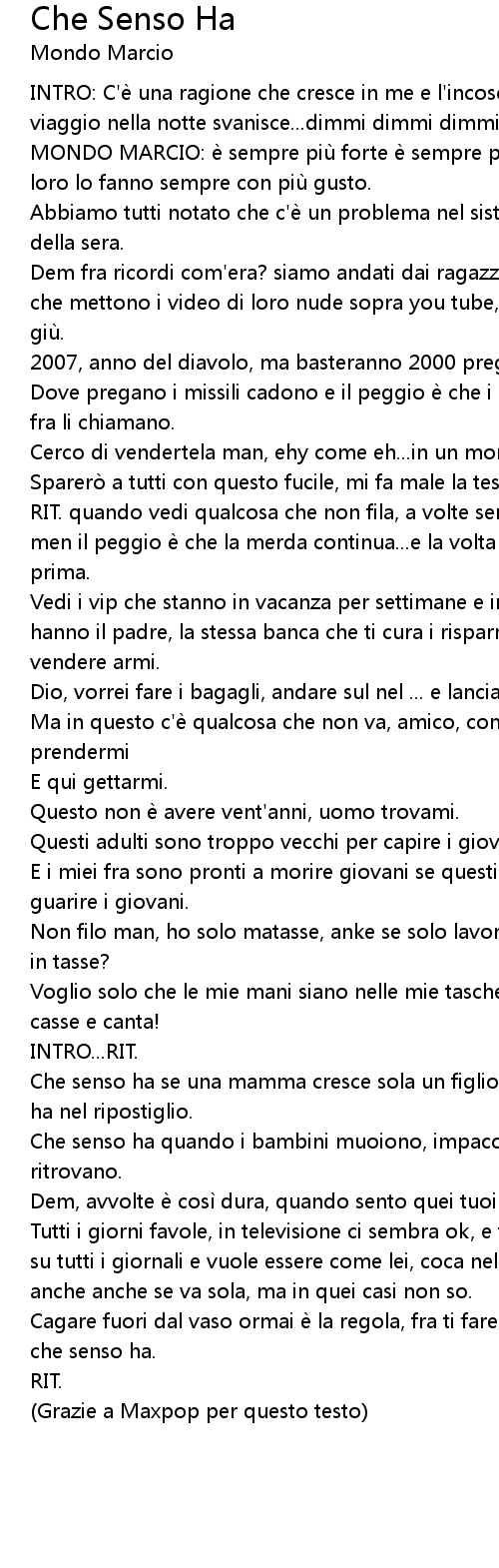 | MONDO MARCIO: è sempre più forte è sempre più ingiusto i miei fra spacciano, loro lo fanno sempre con più gusto. | |