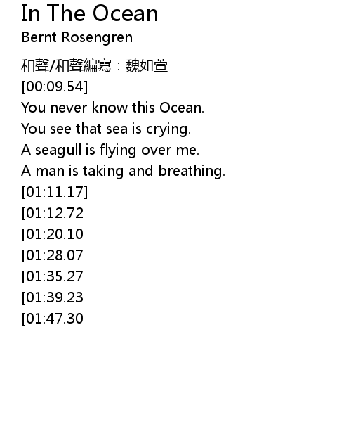 | [00:06.54] | 和聲/和聲編寫:魏如萱 |