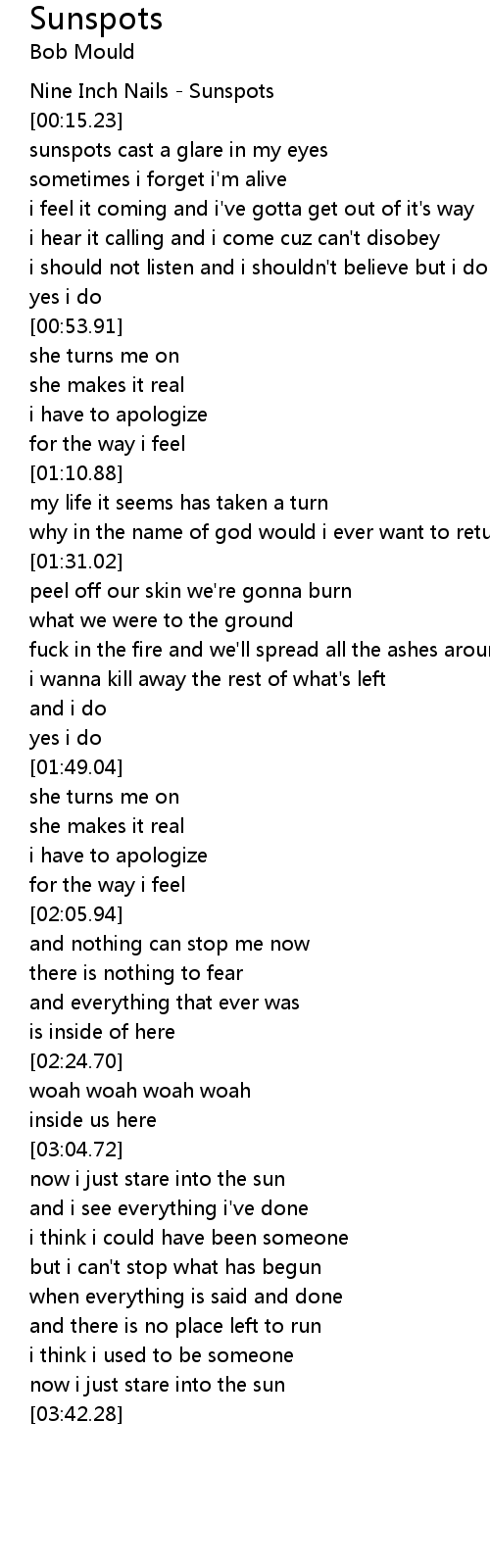 | [00:00.00] | Nine Inch Nails - Sunspots |