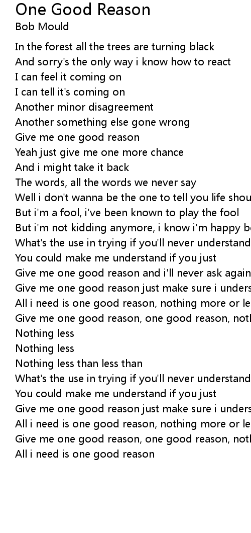 Give me one good reason, one good reason, nothing less |