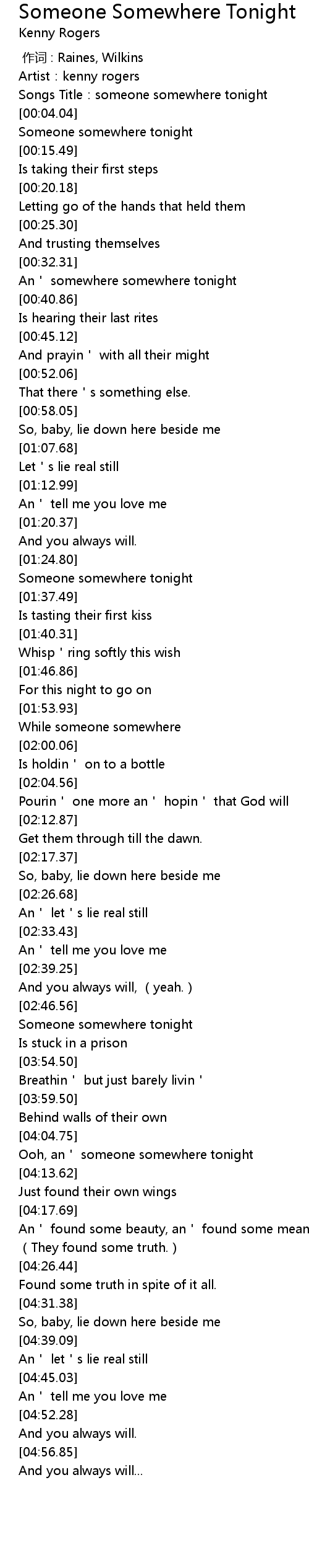 | [00:02.42] | Songs Title: someone somewhere tonight |