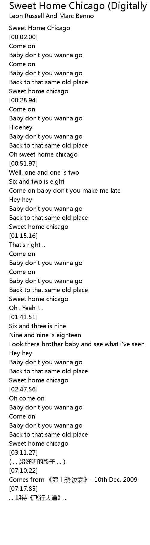 | [00:49.60] | Oh sweet home chicago |