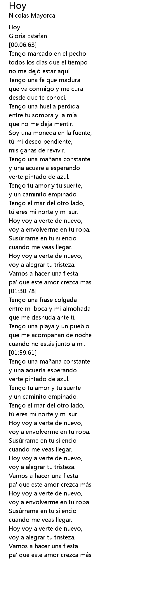 | [02:50.44] | Hoy voy a verte de nuevo, |