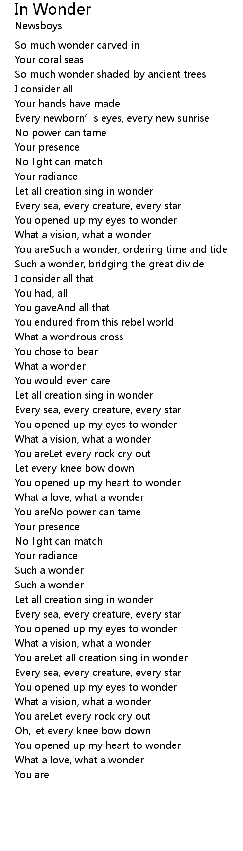 | Let all creation sing in wonder | |