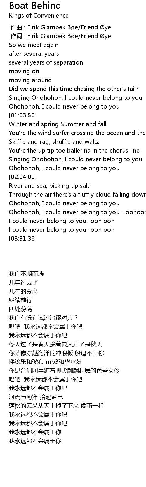 | 歌曲 | Boat Behind |