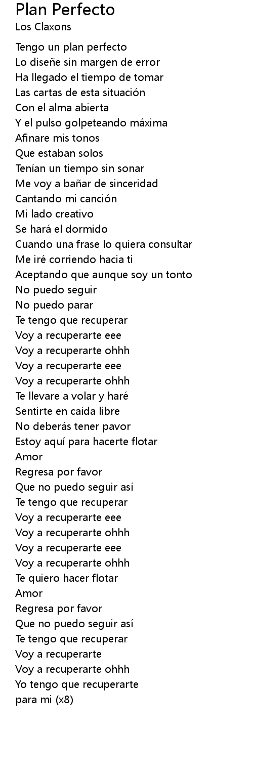 | 歌曲 | Plan Perfecto |
