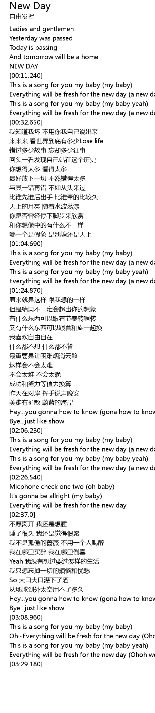 | [03:14.660] | Oh Everything will be fresh for the new day Ohoh well |