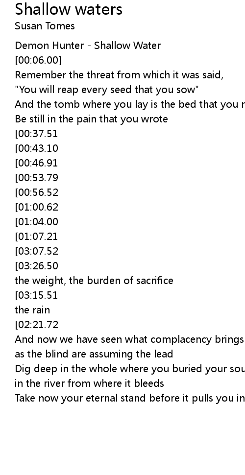 [03:22.89][03:07.52][02:23.74][02:09.20][01:08.49] Shallow water
