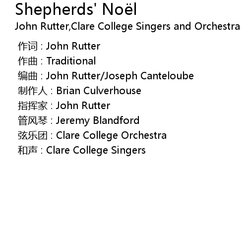| [00:00.000] | 编曲 : John Rutter/Joseph Canteloube |