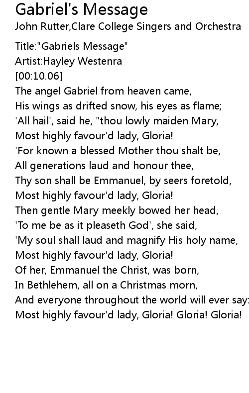 Gabriel's Message 歌词