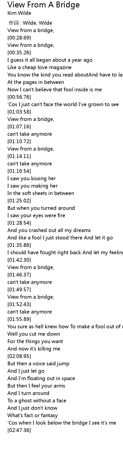 | [00:27.53] | View from a bridge, |